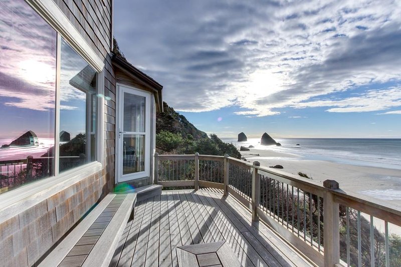 With sweeping Pacific Coastline views, the majestic Haystack Rock and a distant view of Tillamook Head Lighthouse you will be able to enjoy a peaceful Oregon beach vacation!